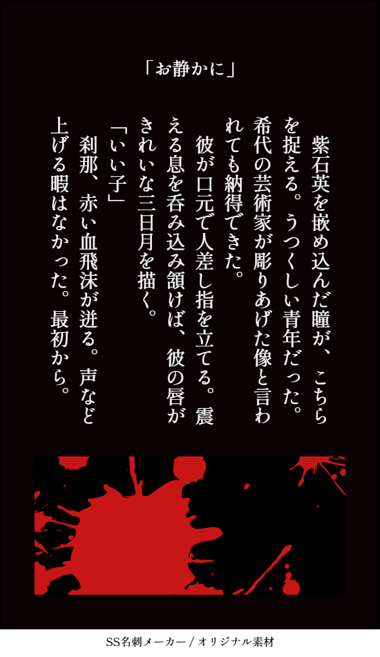 貴方はジャックで『お静かに』をお題にして140文字SSを書いてください。